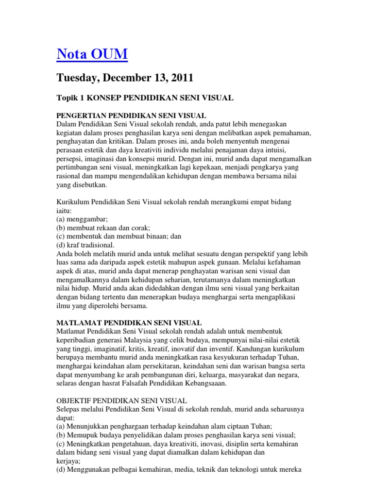 Seni Dalam Pendidikan Oum Note Topik 1 Konsep Dan Latar Belakang Seni