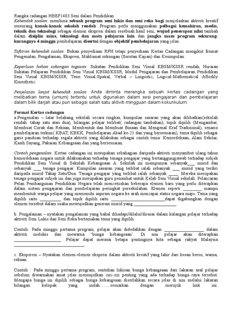 Rangka Cadangan Hbef1403 Seni Dalam Pendidikan Pdf